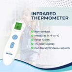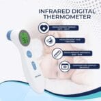 - NO-CONTACT THERMOMETER: As a contactless thermometer, any risk of passing an infection or contracting a contagious illness is minimized. This means the digital thermometer for babies, kids, and adults doesn’t require washing or sterilizing after every use, as it measures temperature from a distance.