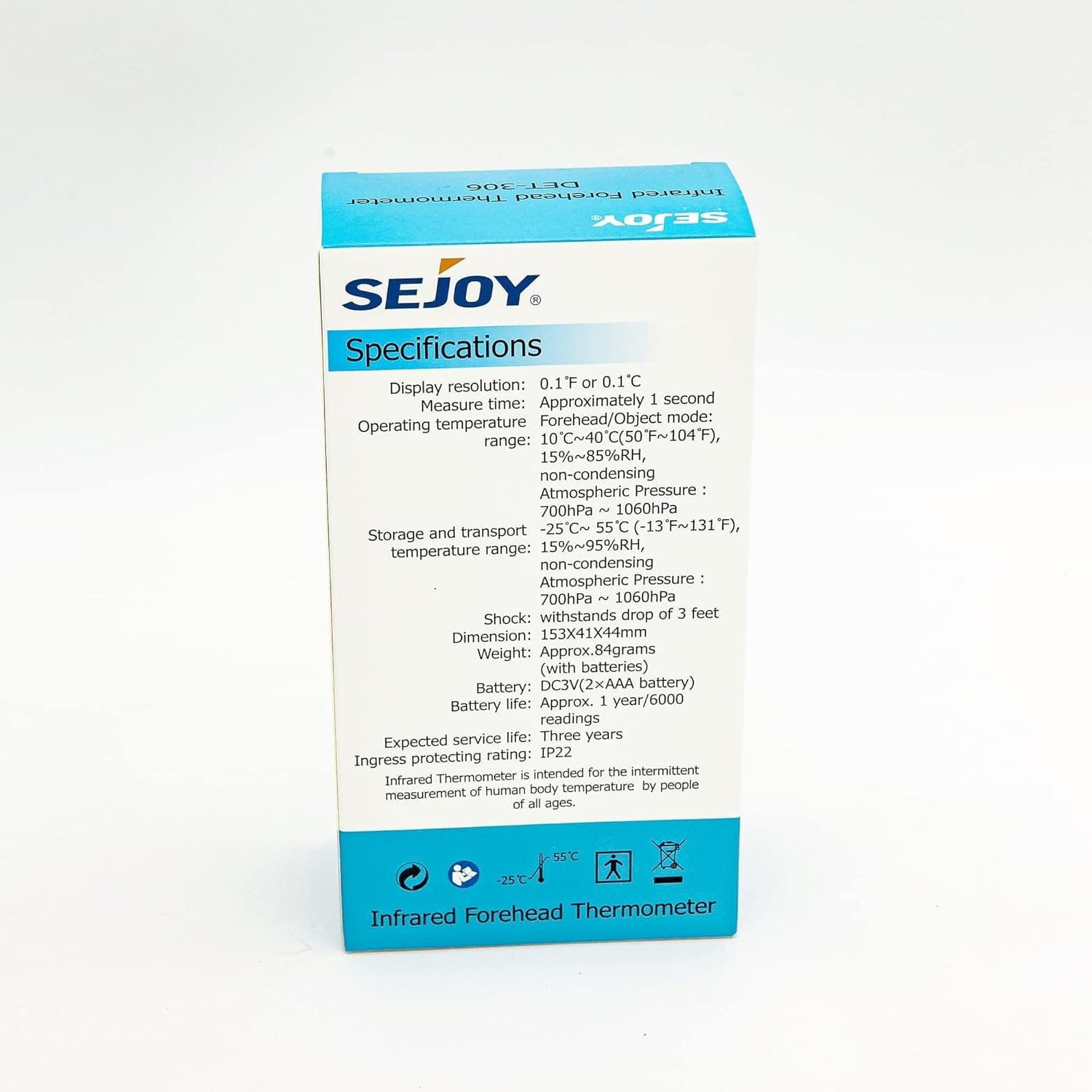- FEATURE-RICH: The Sejoy forehead and object thermometer come with several features: measuring temperature range: 89.6-107.6°F (32-42°C); response time: 500ms; response wavelength: 5-14um; environmental working temperature: 50-95 °F (10-35 °C); battery life: 12 hours, and measuring distance: 2-5cm. The Sejoy forehead and object thermometer takes measurements within seconds and has a fever alarm. The thermal scanner uses two (2) AAA batteries.