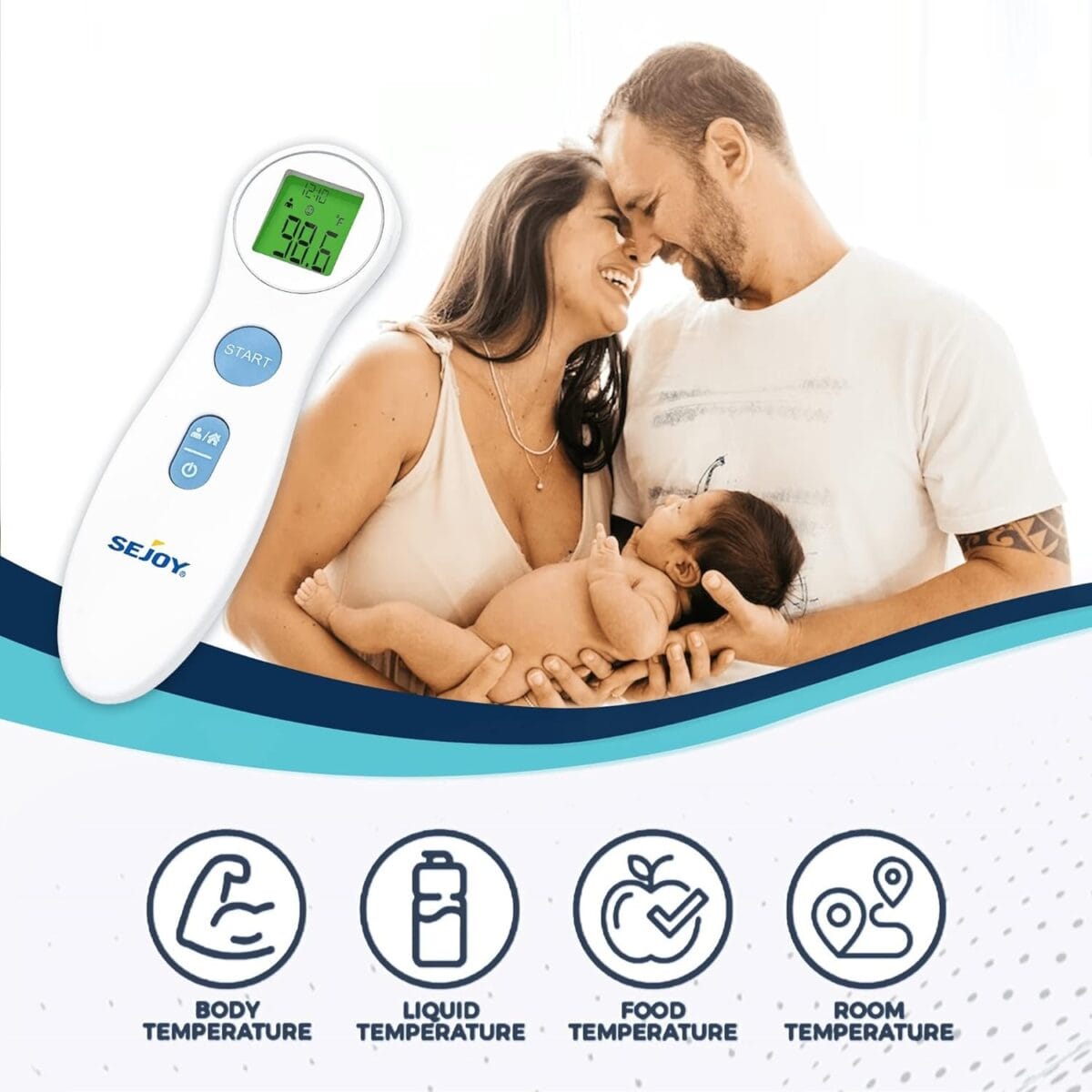 - NO-CONTACT THERMOMETER: As a contactless thermometer, any risk of passing an infection or contracting a contagious illness is minimized. This means the digital thermometer for babies, kids, and adults doesn’t require washing or sterilizing after every use, as it measures temperature from a distance.