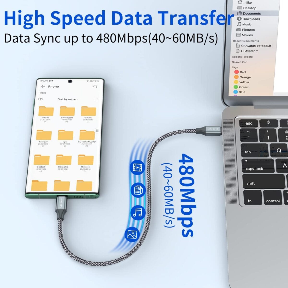 - These cables are designed according to the USB 2.0 specification. The actual transmission speed is within 480Mbps(40-60MB/S) , so it cannot reach the speed of usb 3.0 (5 Gbps) or 3.1 (10 Gbps)