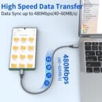 - [Fast Charge and High-Speed Sync]: Output power up to 20V, 3 A, which is ensured by high-speed safe charging, and the USB 2.0 supports data transfer speed up to 480Mbps. NOTE: This product can NOT support video output